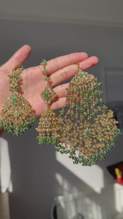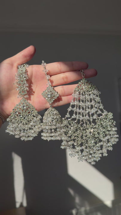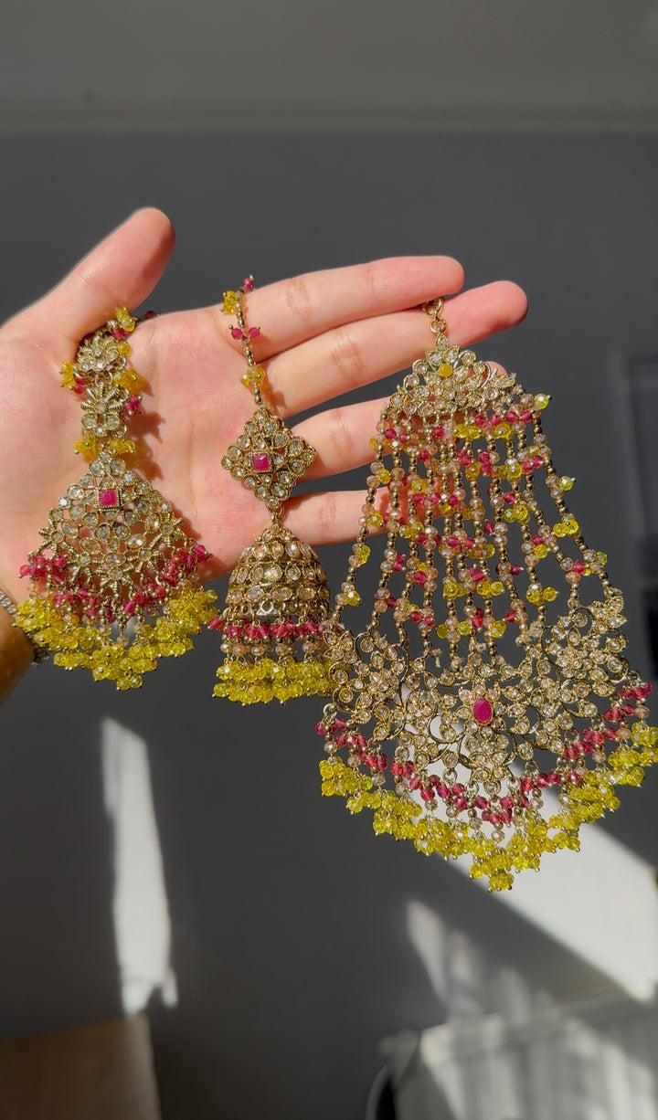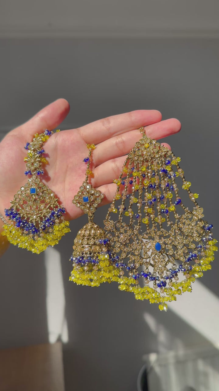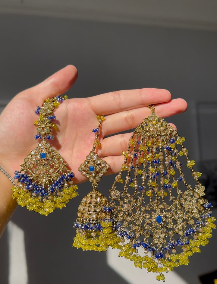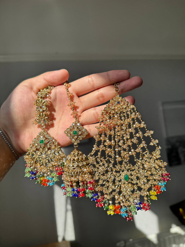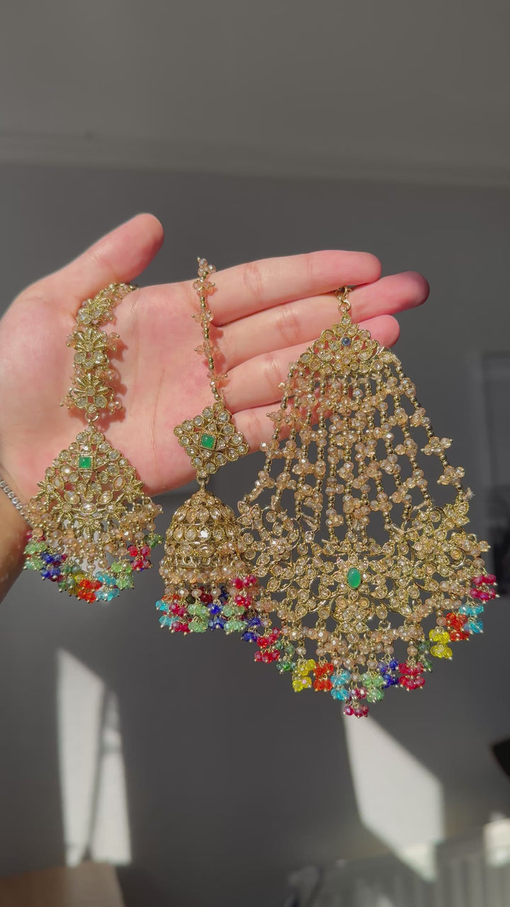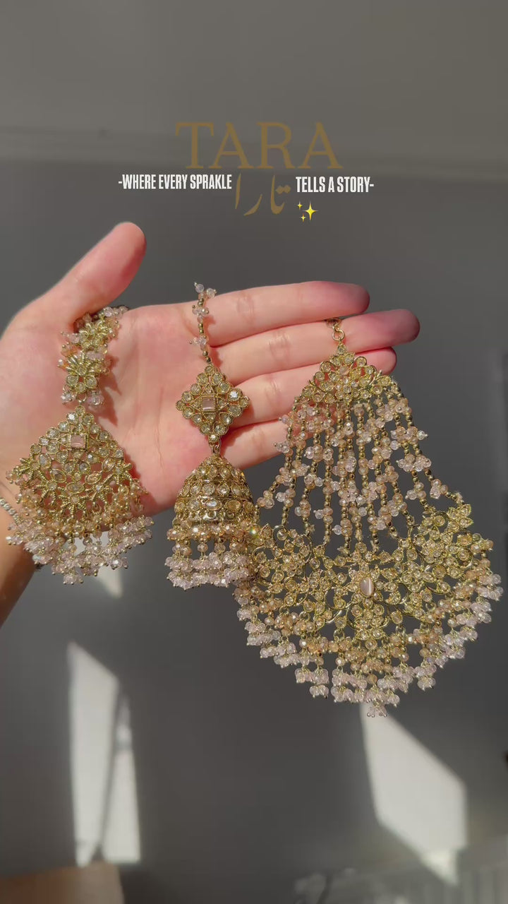MIRAAL is a Jhumar Tikka Set with Earrings and Single Saharas is the perfect blend of traditional charm and regal elegance, ideal for bridal or festive occasions. The set includes: